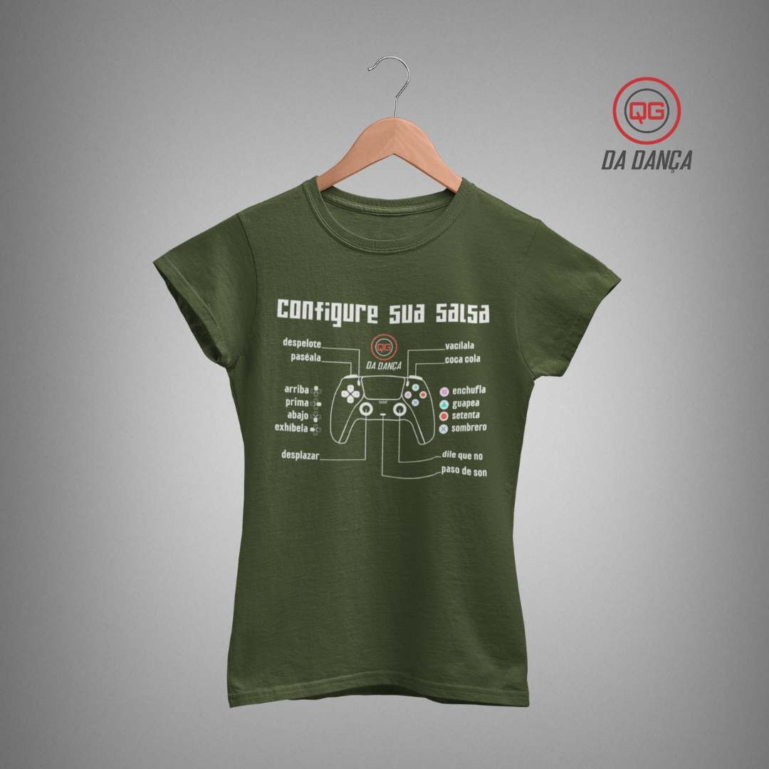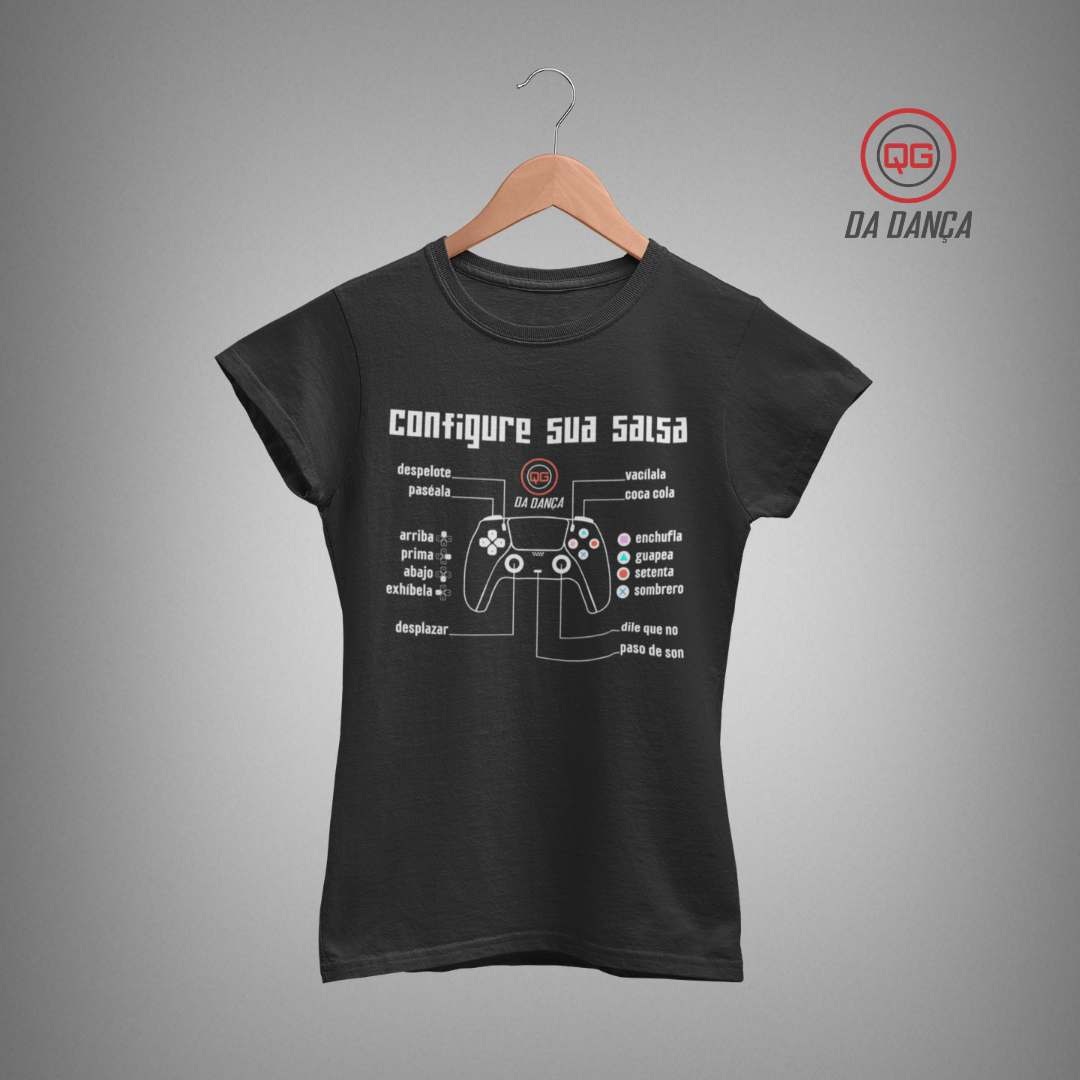 Camiseta de dança feminina perfeita para quem vive a salsa com intensidade e ainda ama uma pegada criativa e moderna. Com a estampa “Configure sua salsa”, inspirada no universo gamer, a peça transforma os principais passos da dança — como enchufla, guapea, setenta e sombrero — em comandos de um controle. Uma proposta divertida e cheia de personalidade para quem domina a pista como quem passa de fase em um jogo.