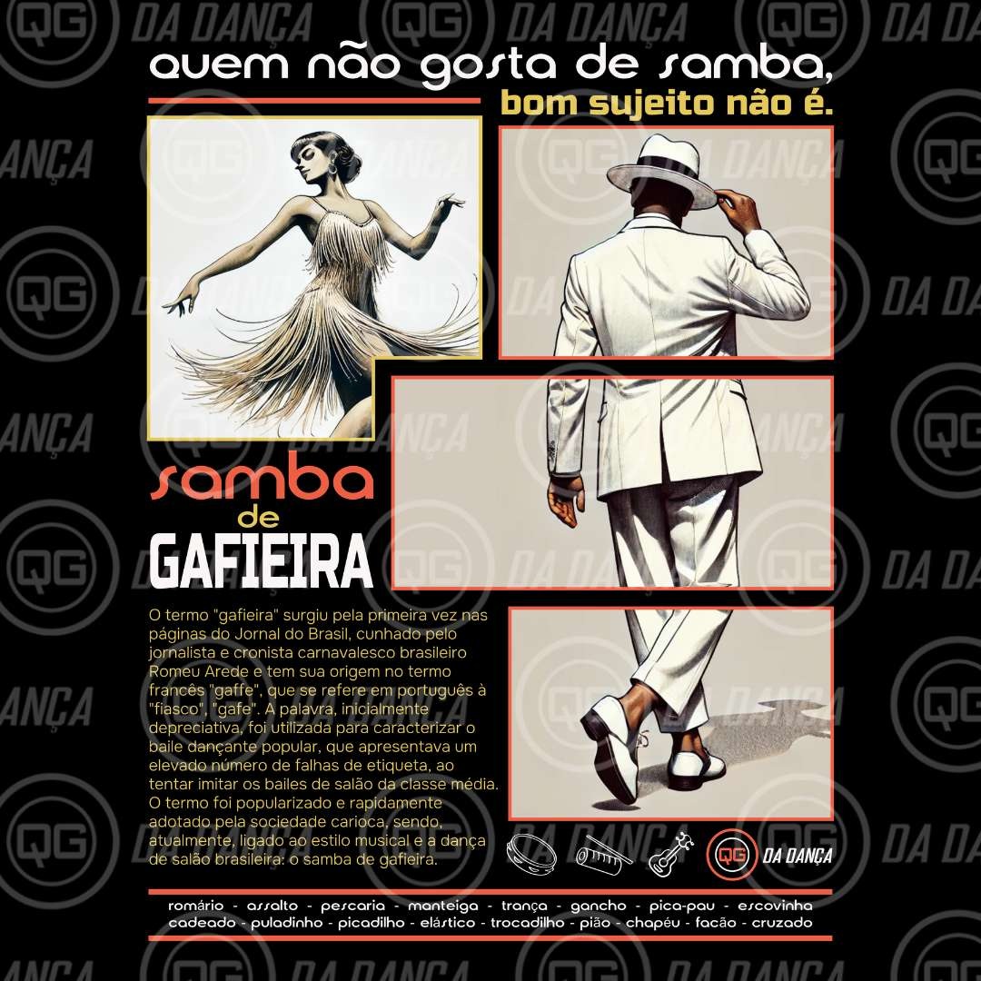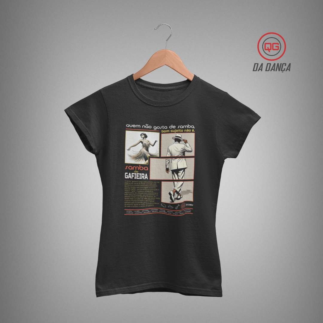 Camiseta de dança feminina inspirada na elegância e na tradição do samba de gafieira, perfeita para mulheres que vivem o charme do salão e sentem o balanço no corpo. Com uma estampa artística que homenageia o casal clássico da gafieira e a frase marcante “Quem não gosta de samba, bom sujeito não é”, essa peça traduz cultura, atitude e paixão pela dança brasileira.