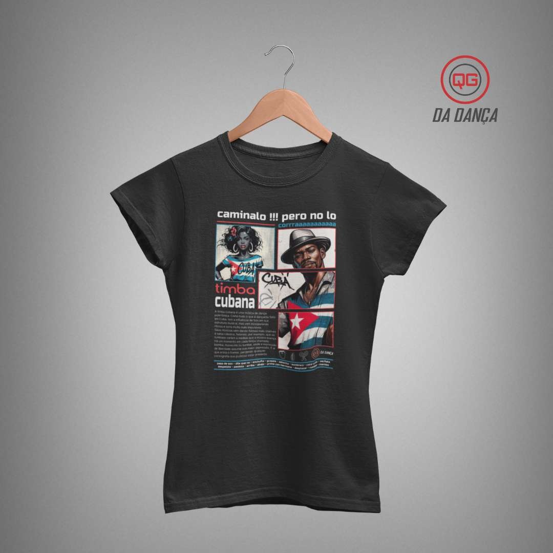 Camiseta de dança feminina inspirada na força e na energia contagiante da timba cubana, perfeita para quem vive intensamente os ritmos latinos. Com uma estampa artística que homenageia Cuba, seus músicos e a cultura vibrante da ilha, essa peça traduz atitude, identidade e paixão pela dança. A frase marcante e os elementos gráficos remetem ao universo da salsa cubana, do casino e, principalmente, da timba, estilo conhecido por sua intensidade e musicalidade única.