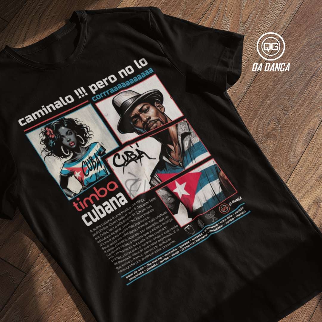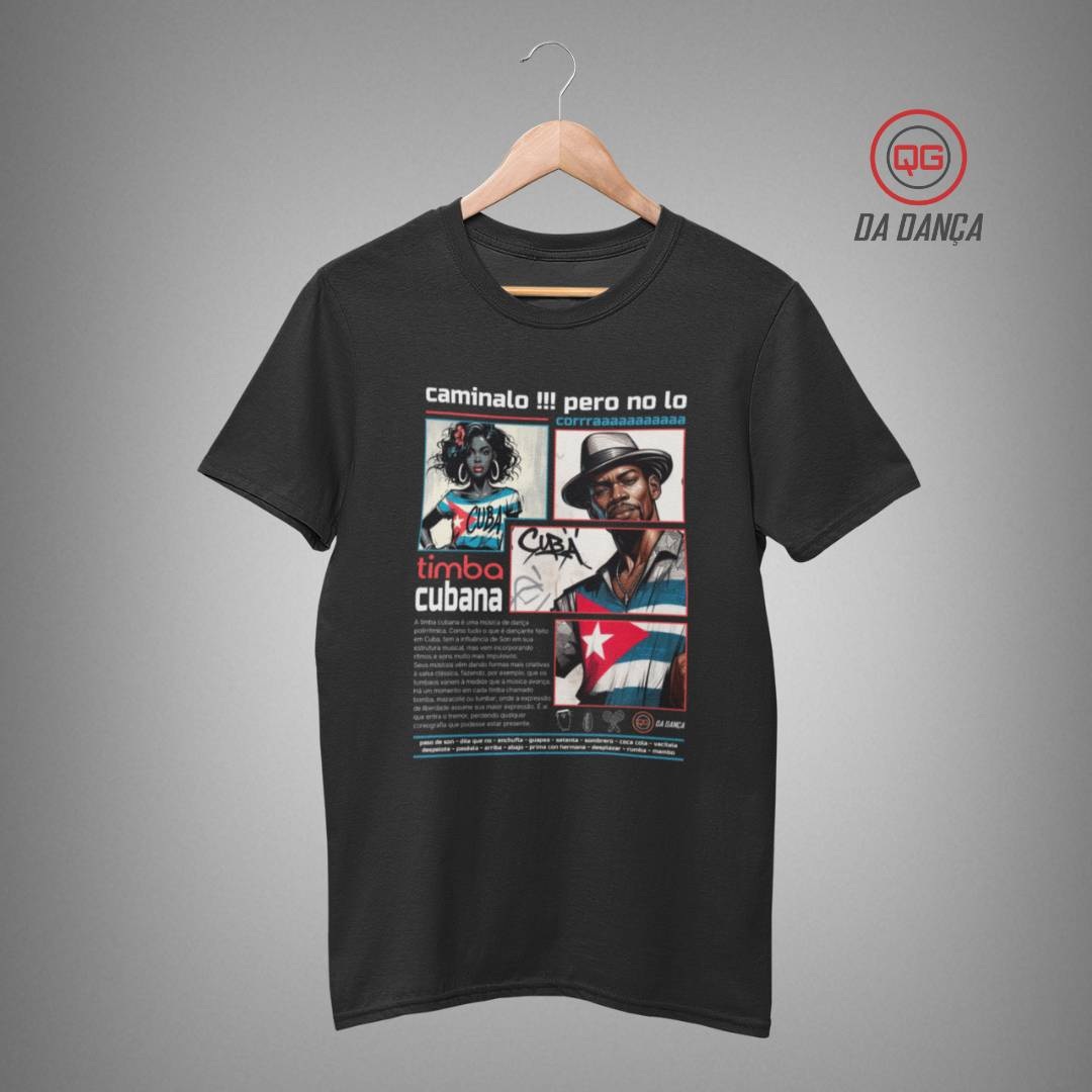 Camiseta de dança inspirada na energia vibrante da timba cubana, perfeita para quem vive o ritmo intenso da música latina. Com uma estampa artística que homenageia Cuba, seus músicos e a força cultural da ilha, essa peça traduz atitude, identidade e paixão pela dança. A temática timba cubana traz referências visuais marcantes, cores fortes e elementos que remetem à tradição e à modernidade desse estilo contagiante.