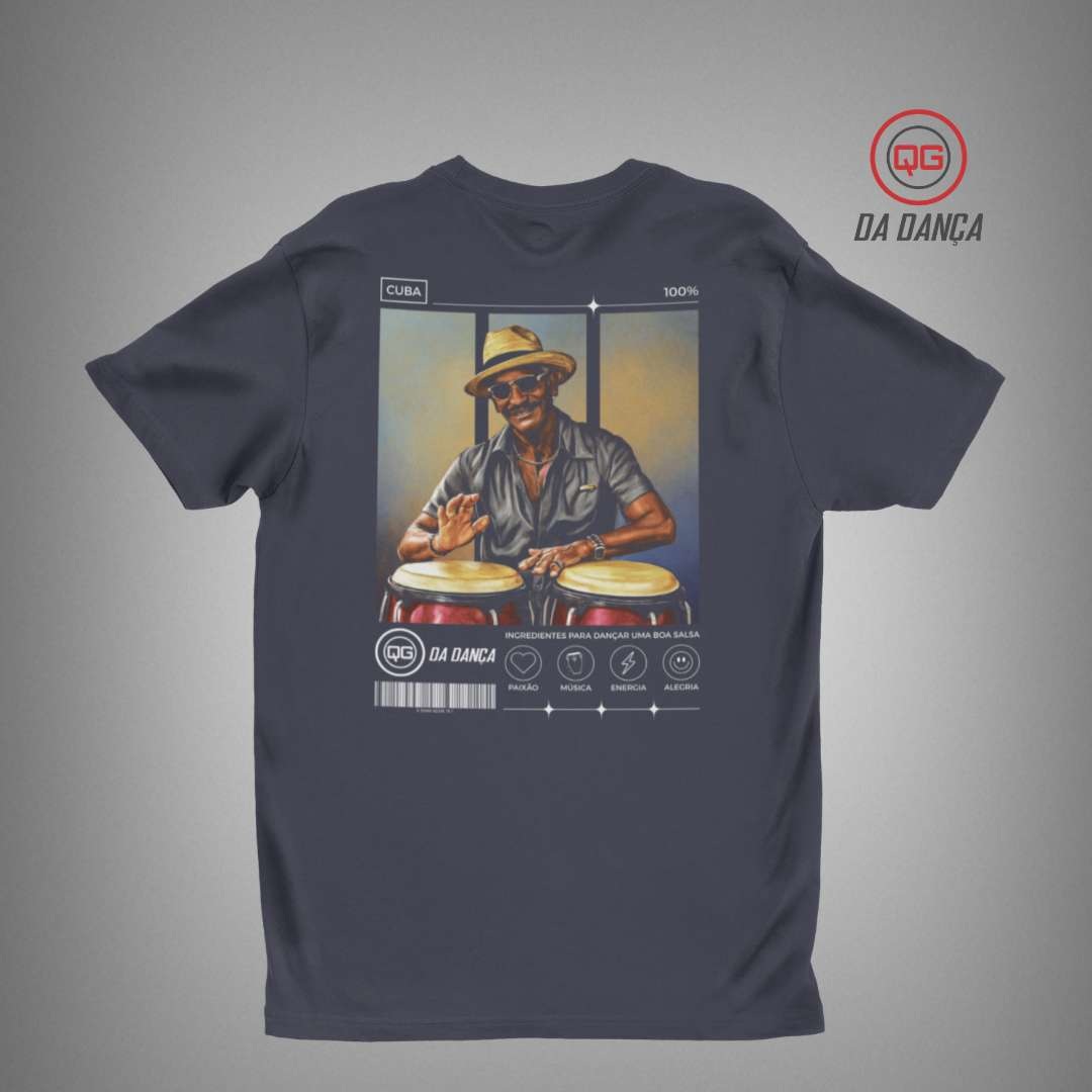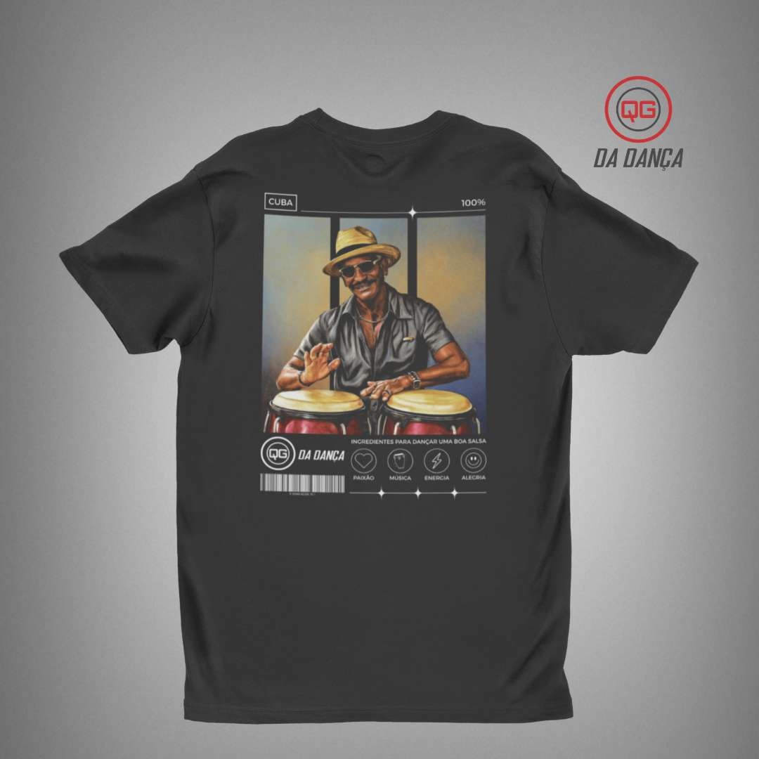 Camiseta de salsa perfeita para quem vive a energia latina e carrega o ritmo no coração. Inspirada na cultura cubana e na essência vibrante da música caribenha, essa peça traduz paixão, movimento e autenticidade em cada detalhe. A estampa exclusiva traz a representação de um percussionista tocando congas, remetendo às raízes da salsa e à atmosfera contagiante das noites de dança.