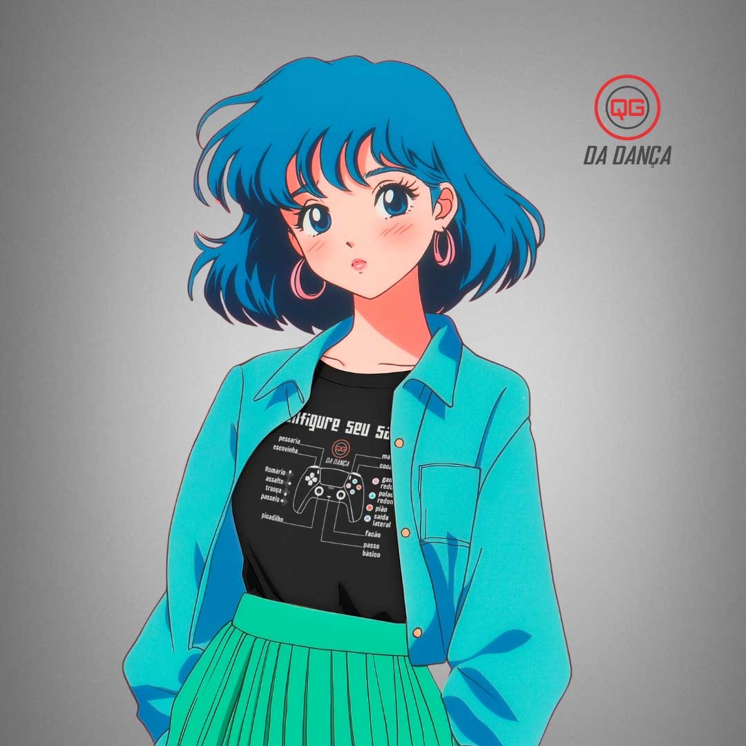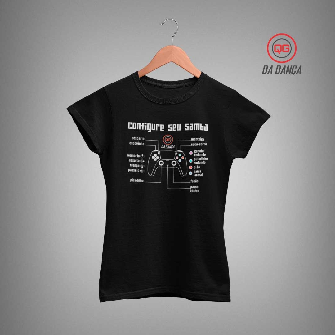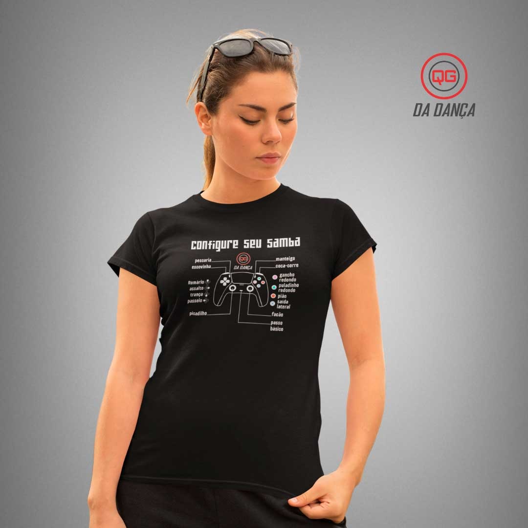 Para os apaixonados por dança e games! Nossa camiseta "Configure seu samba" traz uma estampa criativa e cheia de personalidade: uma manete de videogame, onde os botões estão configurando os passos de dança. Como se cada movimento fosse parte de um jogo onde você é o protagonista!