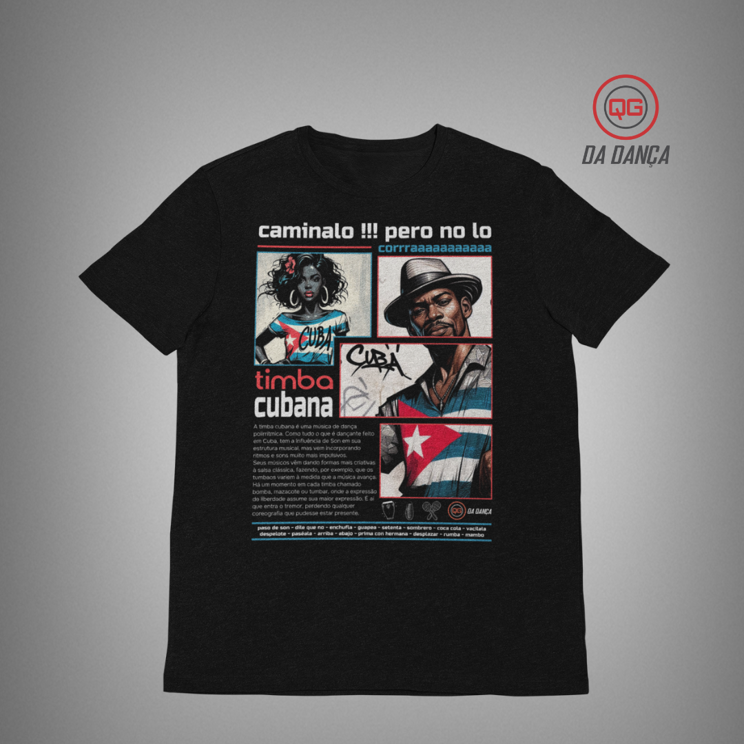 Entre no ritmo da Timba Cubana com essa camiseta estilosa e cheia de personalidade! Inspirada na fusão vibrante da salsa, rumba e son cubano, essa peça é perfeita para quem vive a dança com intensidade.